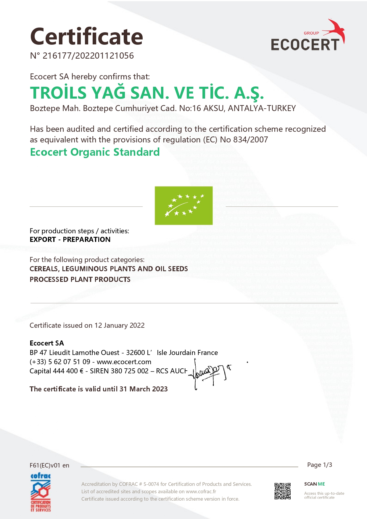 Certifed organic cold pressed carrier oils